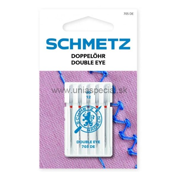 Ihly SCHMETZ s dvojitým očkom 705DE VCS pre domáce šijacie stroje. Balenie: 5 ks (5x80). Sú určené pre dekoratívne šitie s dvomi niťami súčasne. Pomocou dvoch rôznych kontrastných farieb nití docielite zaujímavý efekt šitia. Ihlu môžete používať v domácich šijacích strojoch s vertikálnym rotačným chapačom (napr. JANOME 423S a JANOME 415) pri použití šírky stehu 3,5 mm. Nemôžete ju použiť v strojoch s horizontálnym chapačom.