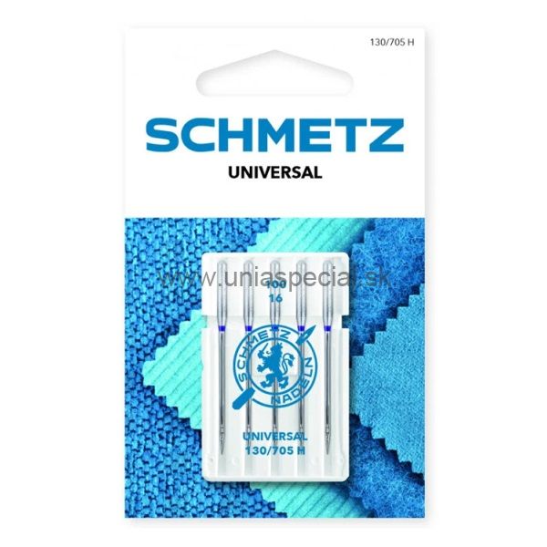 Univerzálne ihly SCHMETZ - 130/705H pre domáce šijacie stroje. Balenie: 5 ks (5x100).