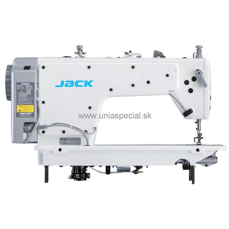 Jednoihlový šijací stroj so stehom viazaným pre šitie jemných až stredne hrubých materiálov, spodné podávanie materiálu, odstrih nití voľba pozície ihly hore/dole, ovládací panel v hlave stroja (jednoduché nastavenie rýchlosti, ovládanie odstrihu nití, pozície ihly). Servomotor 220V zabudovaný v hlave stroja - pramy pohon. Zdvih pätky kolennou pákou, LED osvetlenie pracovnej plochy. Kompletne zmontovaný stroj s podstavcom a pracovnou doskou.