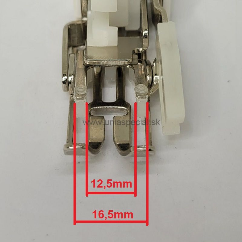 Vnútorná vzdialenosť zúbkov je 12,5mm, vonkašia vzdialenosť zúbkov je 16,5mm.