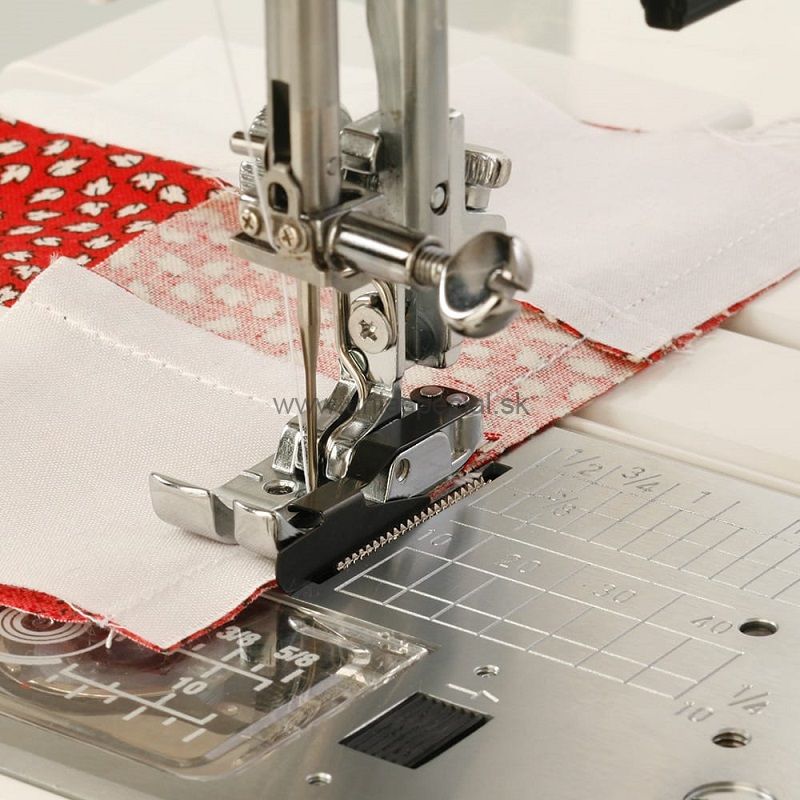 Pätka s vodičom 1/4" (6,35mm). Vďaka tejto pätke perfektne zošijete viacej vrstiev materiálu rovným stehom. Pätka kopíruje okraj materiálu. Je veľmi populárna v technike patchwork. Je určená pre šijacie stroje s výkyvným CB chapačom alebo s rotačným chapačom s možnosťou nastavenia polohy ihly podľa potreby.