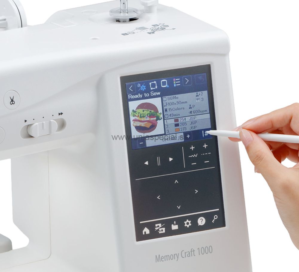 Elektronický šijací a vyšívací stroj Janome MC100 E v jednom. Vďaka novému typu procesora, je reakcia a obsluha stroja až 4x rýchlejšia a presnejšia. V stroji je zabudovaných až 241 výšiviek a 1078 šijacích programov vrátane niekoľkých druhov abecedy (3 šijacie a 11 vyšívacích) a 11 typov gombíkových dierok. Nový farebný dotykový LCD displej verne zobrazí všetky potrebné maličkosti. Môžete nielen plnohodnotne šiť, ale môžete aj plnohodnotne vyšívať. Maximálns plocha výšivky je 140 x 140 mm.