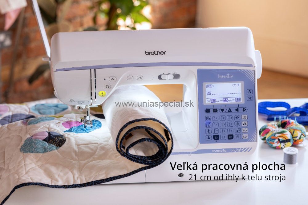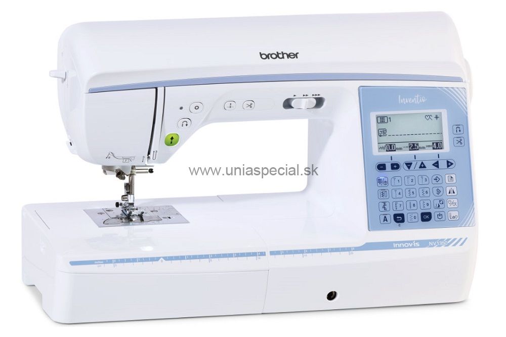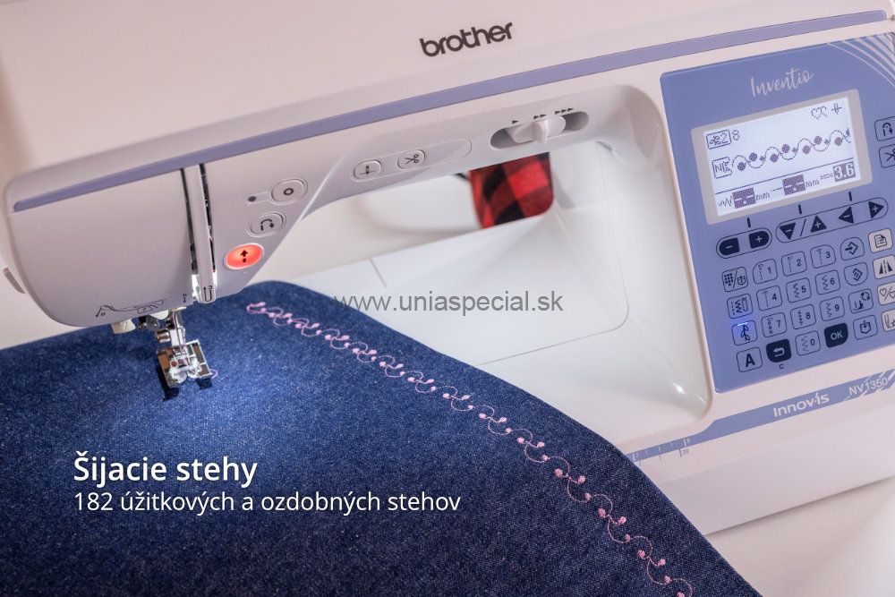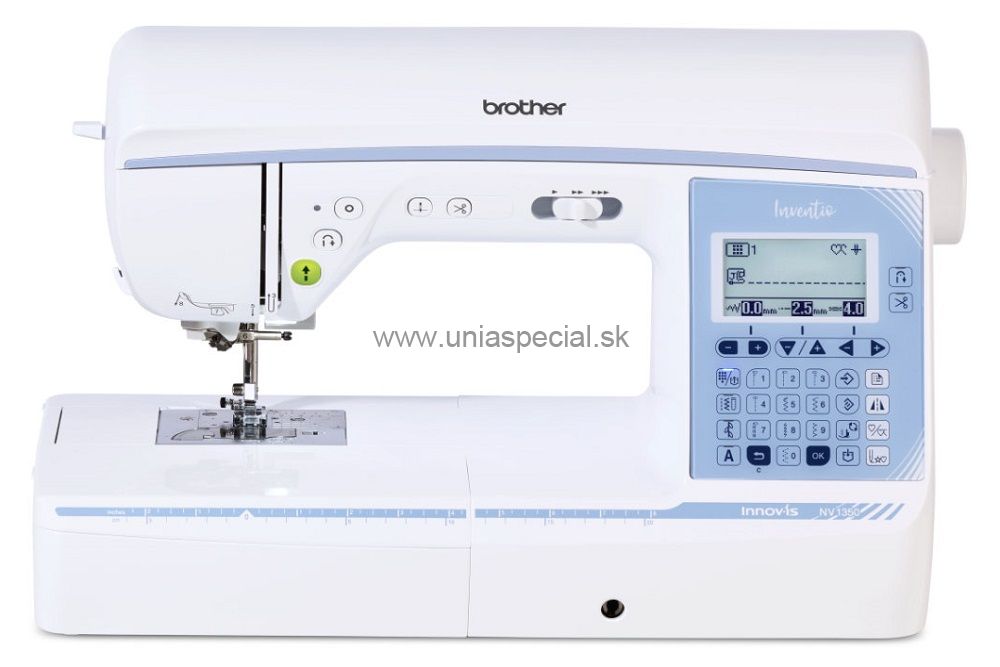Šijací stroj Brother Inventio NV1350 je elektronický šijací stroj s automatickým odstrihom nití vhodný pre patchwork a quilting. Stroj ponúka 184 druhov stehov, 10 typov automatickej gombíkovej dierky, LCD displej, horizontálny rotačný chapač. Stroj je vybavený automatickým navliekačom nite do ihy, polohovaním ihly, šitím bez nutnosti použitia pedálu, reguláciou rýchlosti šitia na stroji, automatickým zapošitím. České menu.