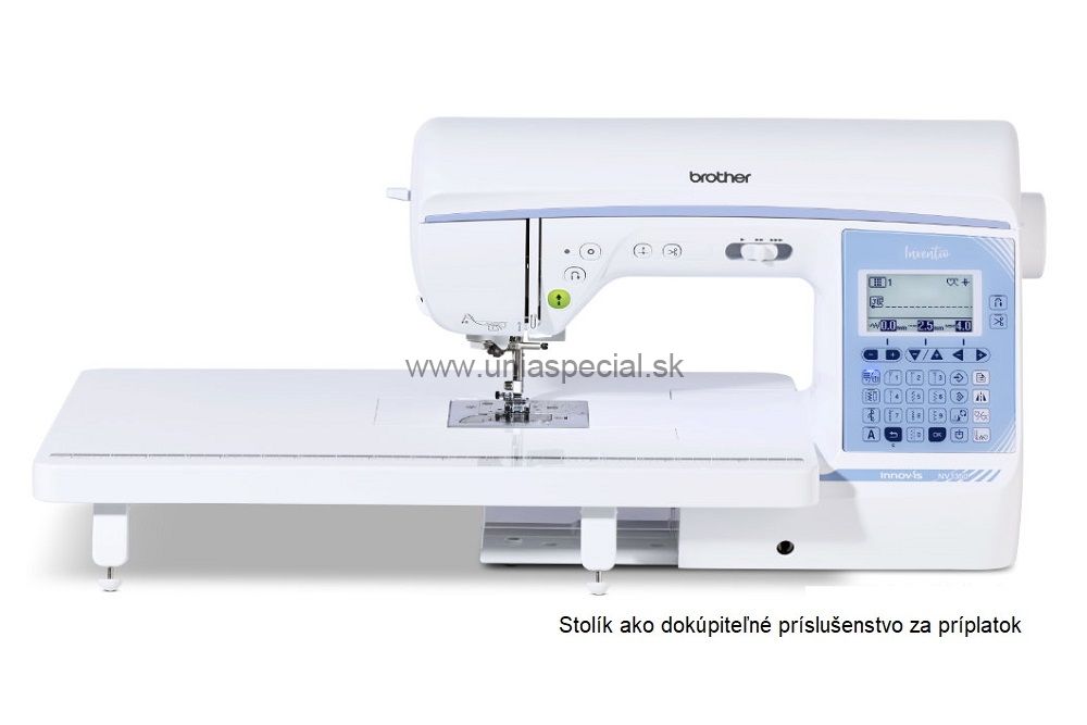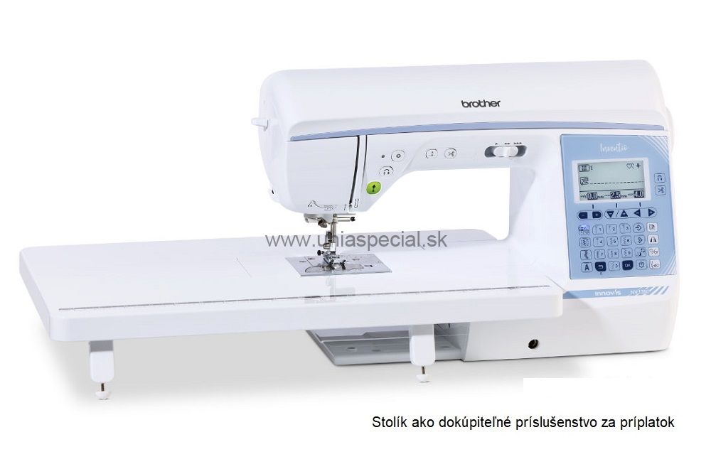 Oproti nižšiemu modelu Brother NV1150 má automaticky prednastavené napätie nite pre každý steh a tiež možnosť šitia do strany - doľava, doprava, širšie stehy a vyššie písmenka abecedy (aj malé písmena).