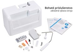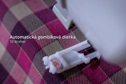 Stroj má veľa vychytávok, ktoré šetria váš čas, ako je automatický odstrih nite, elektronická regulácia prítlaku pätky alebo elektronické nastavenie napätie nite pre každý steh a každú látku.