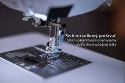 - 7- bodové podávanie spoľahlivo podáva všetky materiály od jemného hodvábu po hrubý denim