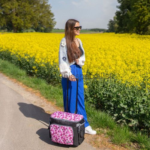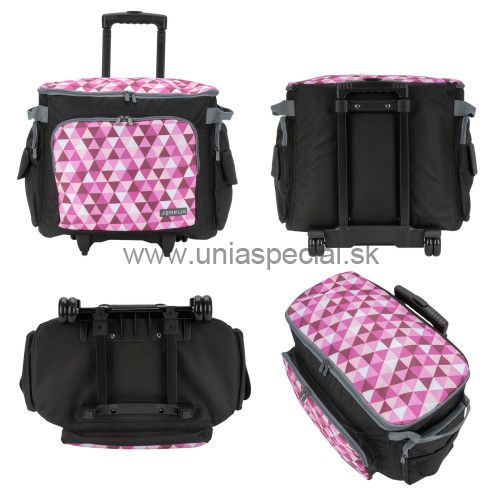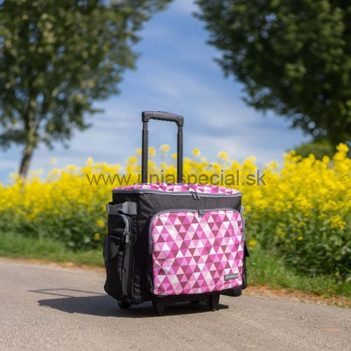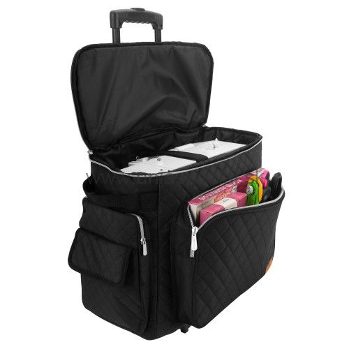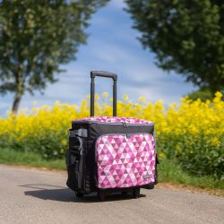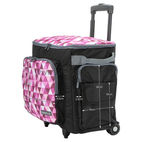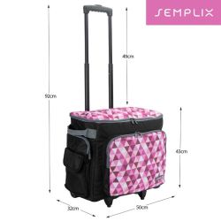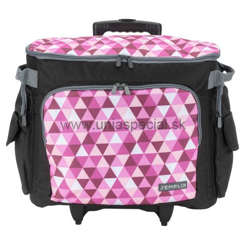 Taška na kolieskach Semplix Diamond Crystal pre šijacie stroje zaujme svojim nadčasovým dezajnom a robustným spracovaním. Vďaka svojim rozmerom a robustnej teleskopickej rukoväti ponúka dostatok priestoru a mobility pre veľké modely šijacích strojov, ako sú napr. Brother Innov-is 1100/1300 alebo Bernina rady 5. Kolieska s guličkovými ložiskami umožňujú jednoduché manévrovanie, zatiaľ čo pohyblivá prepážka a bočné vrecká udržujú vnútrajšok v poriadku.