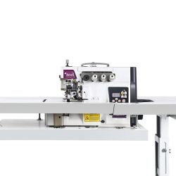 1-ihlový, 3-nitný obnitkovací šijací stroj pre ľahké až stredne hrubé materiály. Motor a ovládací panel zabudovaný v hlave stroja, LED osvetlenie pracovnej plochy stroja, možnosť nastavenia pozície ihly pri zastavení stroja (dolu / hore). Pripojenie 230 V. Maximálna rýchlosť šitia 6000 stehov/min, nastaviteľná dĺžka stehu 0,8-4 mm, maximálna šírka stehu 4,0 mm. Diferenciálne spodné podávanie, centrálne mazanie (uzavretý systém), výška zdvihu prítlačnej pätky 6 mm. Ihlový systém B-27.