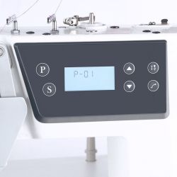 Zmontovaný, kompletný priemyselný šijací stroj vrátane podstavca so zabudovaným servomotorom o výkone 550W (napájanie 230V), stroj je pripravený k okamžitému šitiu.