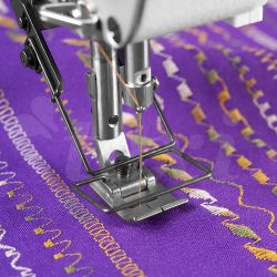 Stroj je vybavený softvérom na programovanie stehov na dotykovom ovládacom paneli a na ich ukladanie do pamäte (až 500 vzorov).