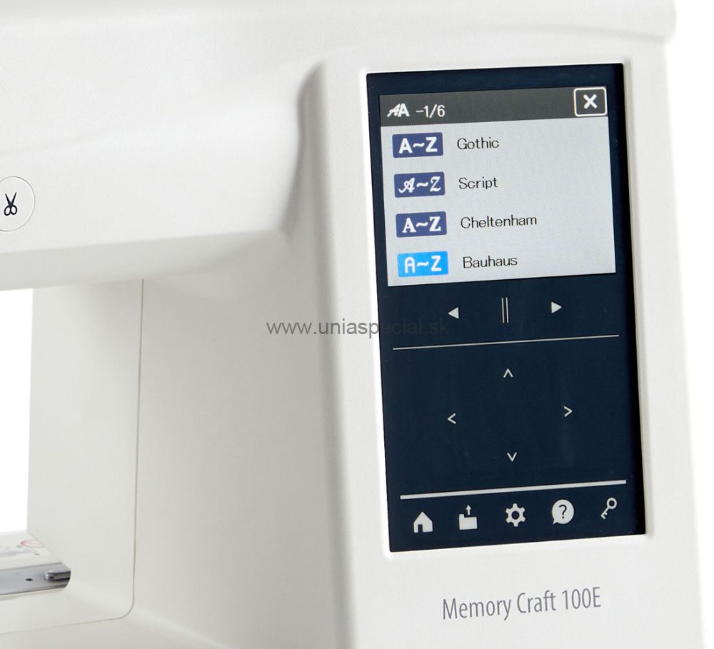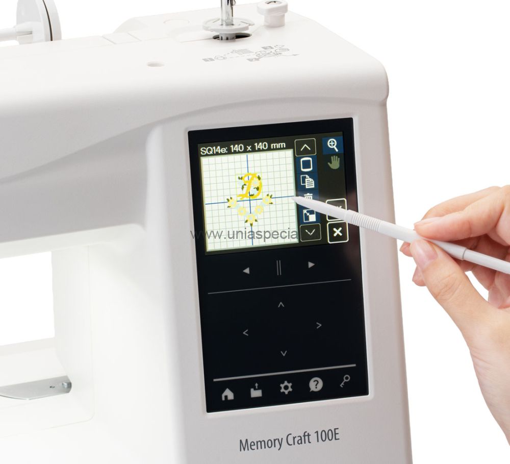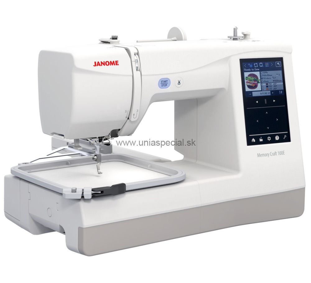 Elektronický vyšívací stroj Janome MC100 E (Janome Memory Craft 100E) je určený výhradne pre vyšívanie. Vyšívacie stroje Janome MC100 E sú vybavené rotačným chapačom, automatickým navliekaním nite, LCD farebným displejom a USB portom na prenos výšiviek. Tieto vyšívacie stroje ponúkajú kvalitu šitia charakteristickú pre šijacie stroje Janome, vrátane vynikajúcich vyšívacích funkcií. Ovládanie stroja v Českom jazyku zaisťuje pohodlnú, rýchlu a intuitívnu obsluhu všetkých funkcií. Vďaka prehľadnému českému menu na farebnom dotykovom displeji je nastavenie výšiviek, úprava vzorov aj samotná práca so strojom jednoduchá a zrozumiteľná, čo ocenia začiatočníci aj pokročilí užívatelia.