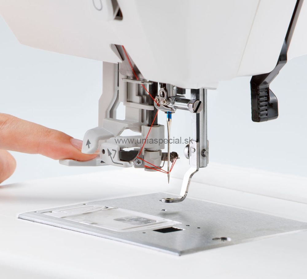 - Vstavaný senzor pretrhnutia cievky a hornej nite